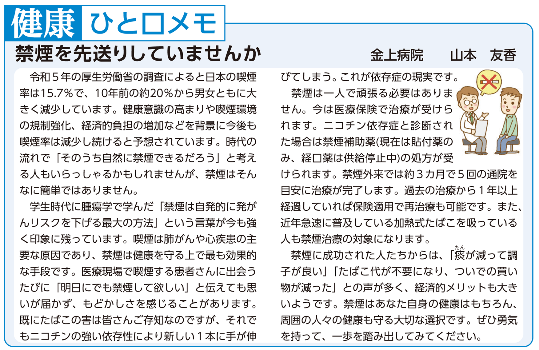 病院と医院はともに連携して、皆さんの体(からだ)を守るシステム(しくみ)がありますから、安心してください。大丈夫です。